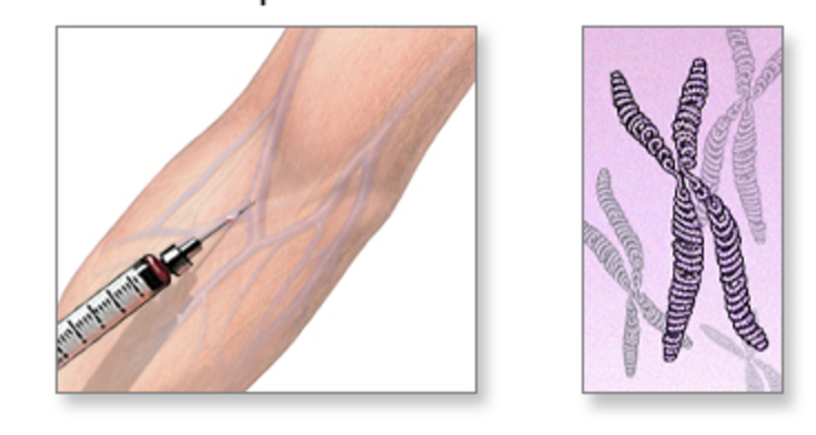 این آزمایش بر روی نمونه خون محیطی انجام می گیرد. در این آزمایش وضعیت کروموزومی سلول های خونی از نظر تعداد و ساختار بررسی می شود.