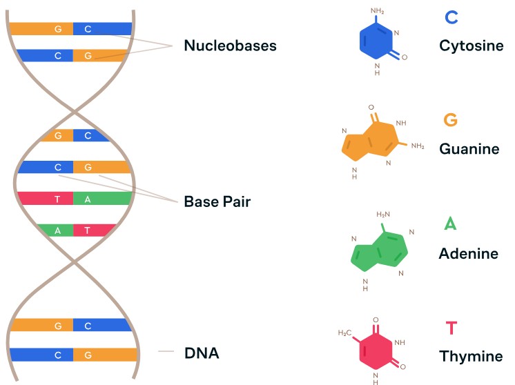 DNA از چهار واحد سازنده یا باز تشکیل شده است که با حروف A، C، G و T شناخته میشوند. توالی این بازها دستورالعملهایی را برای سلولهای یک ارگانیسم فراهم میکند تا بدانند چگونه پروتئینهای مورد نیاز برای عملکرد طبیعی خود را بسازند.