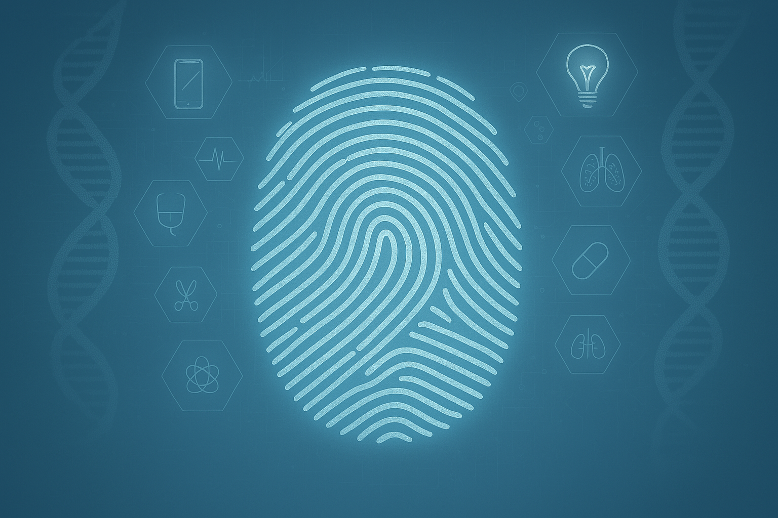 اثر انگشت فرد بر اساس الگوهای برجستگی های پوستی به نام درماتوگلیف (dermatoglyphs) روی پد انگشتان تعریف می شود. این برجستگی ها در انگشتان پا ، کف دست ها و کف پا نیز وجود دارد. اگرچه الگوهای اصلی حلقه، قوس و حلقه ممکن است مشابه باشند، اما جزئیات الگوها برای هر فرد خاص است.