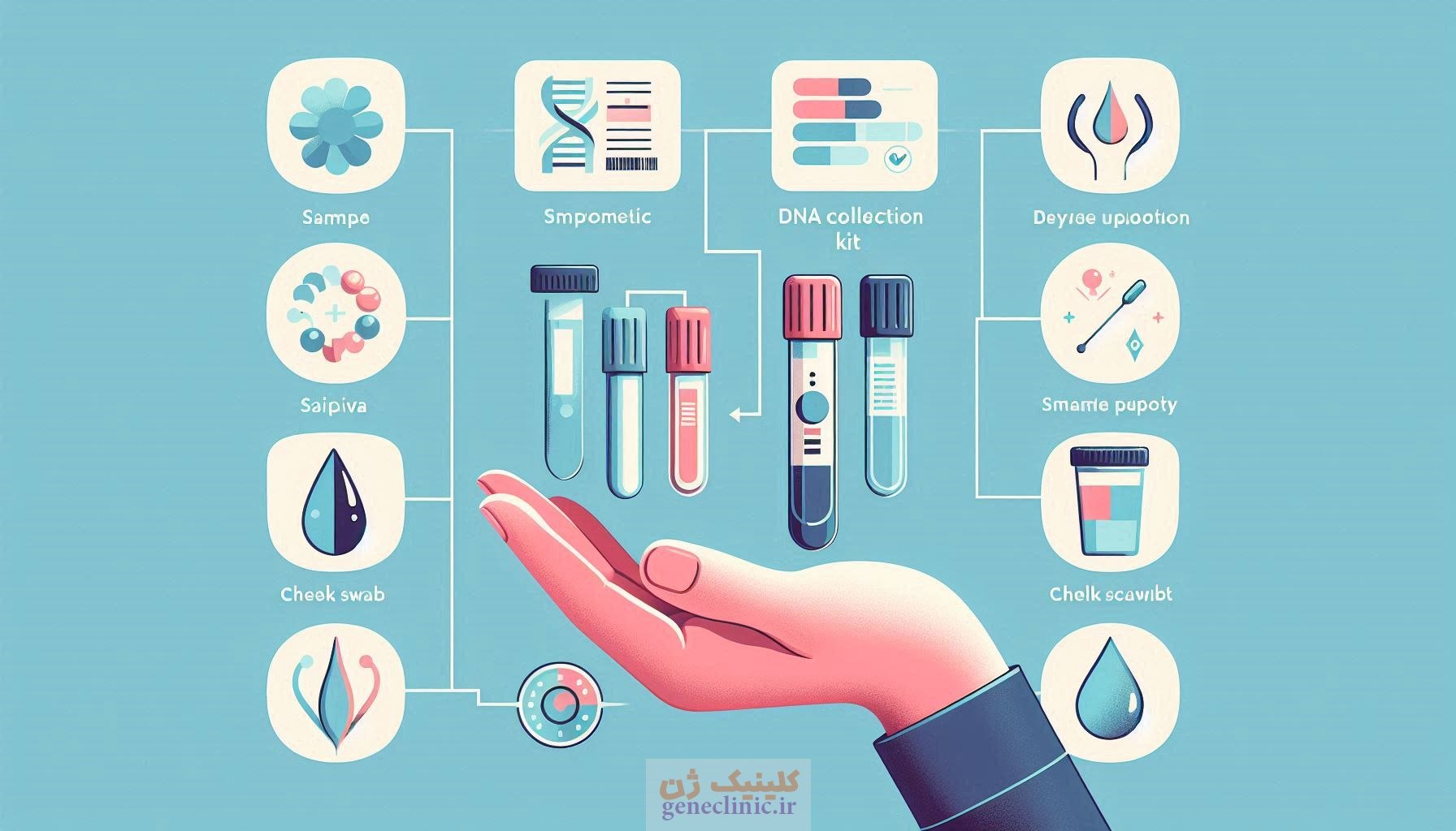 تستهای ژنتیکی بر روی نمونهای از خون، مو، پوست، مایع آمنیوتیک (amniotic fluid) (مایعی که در دوران بارداری جنین را احاطه کرده است) ، پرزهای جفتی (chorionic villus)جنین یا سایر بافتها انجام میشوند. به عنوان مثال، روشی به نام اسمیر دهانی (buccal smear) از یک برس کوچک یا سواب پنبهای برای جمعآوری نمونهای از سلولها از داخل دهان و سطح داخلی گونه استفاده میکند. نمونه به آزمایشگاه ارسال میشود و کارشناسان و تکنسینها بسته به بیماری یا اختلال مورد نظر مشکوک، به دنبال تغییرات خاص در کروموزومها، DNA یا پروتئینها میگردند. آزمایشگاه نتایج تست را به صورت کتبی به پزشک یا مشاور ژنتیک فرد یا در صورت درخواست، مستقیماً به بیمار گزارش میدهد.