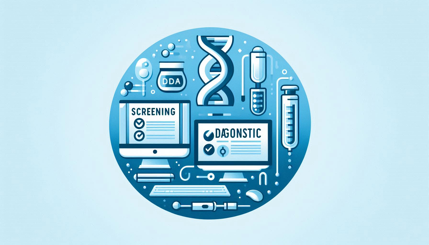آزمایشهای غربالگری (genetic screening) خطر ابتلای فرد به یک بیماری ژنتیکی را ارزیابی میکنند، در حالی که آزمایشهای تشخیصی (genetic diagnostic tests) ، بیماریهای ژنتیکی را شناسایی میکنند. همه این آزمایشها هم مزایا و هم محدودیتهایی دارند .