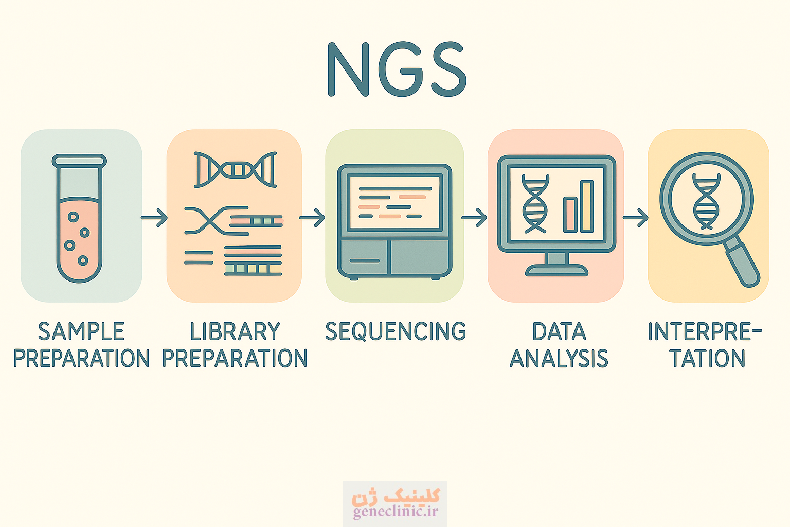 - تجزیه و تحلیل داده ها: میلیونها قطعه کوتاه تعیین توالی شده با یک ژنوم مرجع همتراز و مقایسه میشوند و ابزارهای آنالیز بیوانفورماتیک واریانت ها را شناسایی میکنند.