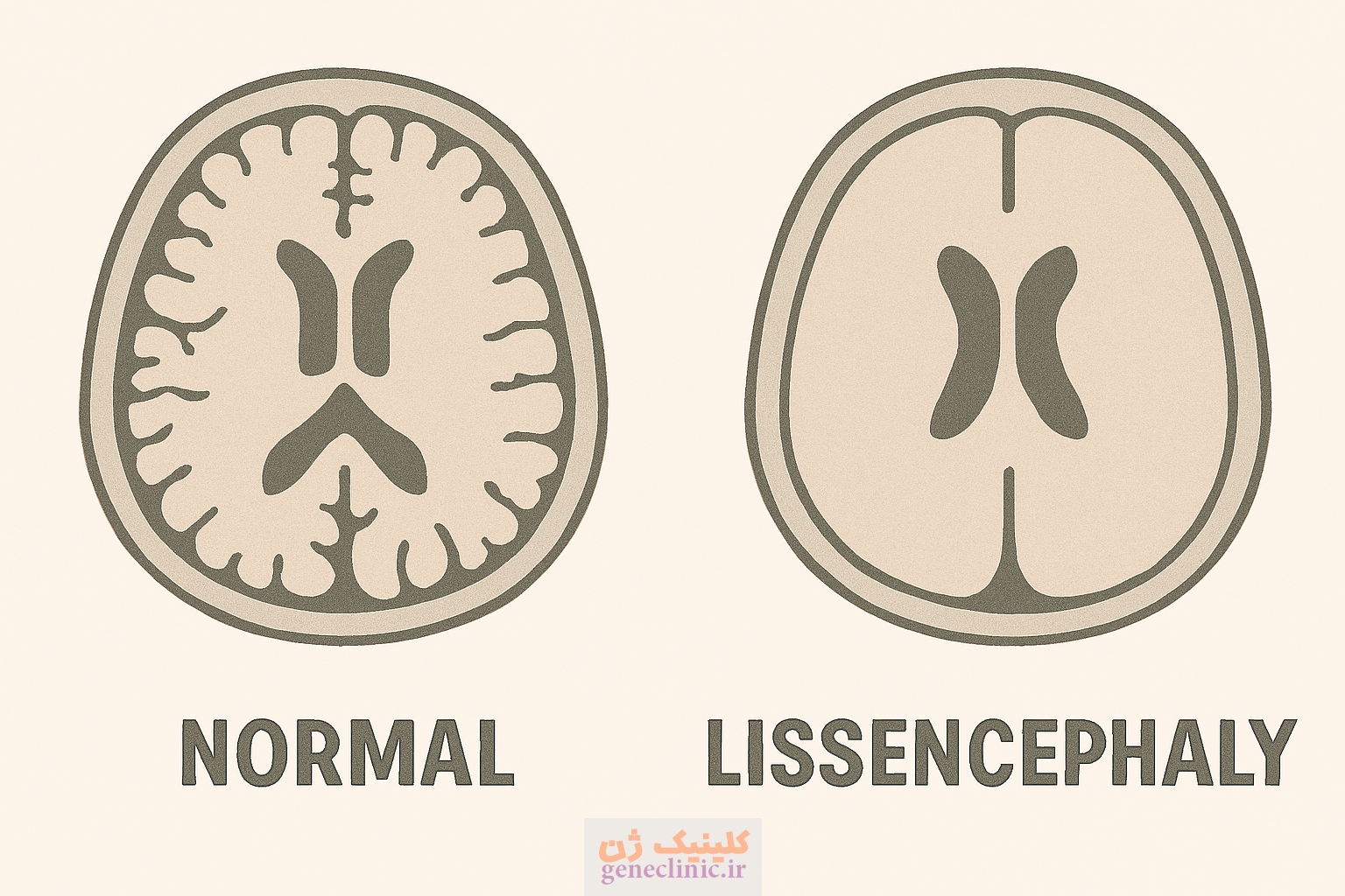 - کل یا قسمت هایی از سطح مغز به دلیل عدم رشد چین ها (gyri) و شیارها (sulci) ی مغزی صاف به نظر می رسد.